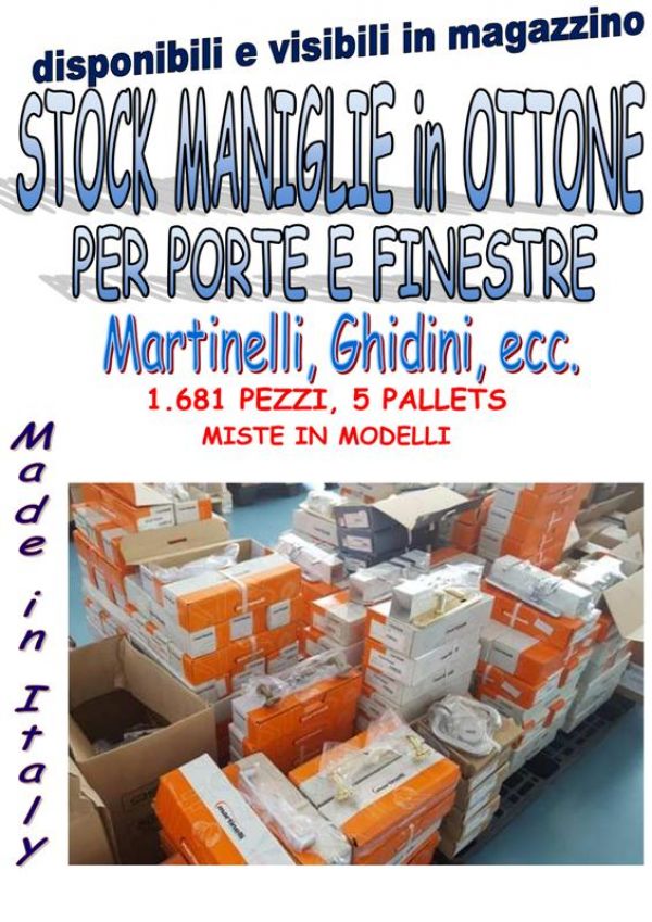 - Stock maniglie in ottone made in italy marca Ghidini, Martinelli e Thema per porte, finestre, martelline in modelli misti. Tot 1680 pezzi disposti in 5 bancali. Per info e prezzo contattare Bobbi Luca +39 3288535881 o uff. 0744800948
