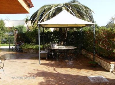 - Immediatamente abitabile, in posizione equidistante dal centro commerciale e dal mare, unità immobiliare in fabbricato quadrifamiliare. La parte abitativa si compone di 2 livelli: zona giorno con portico, ingresso soggiorno, angolo cottura, bagno di servizio, zona notte da scaletta interna con 3 stanze, bagno di piano, balcone e veranda. Gli infissi in alluminio con vetro camera, sono provvisti di zanzariera, impianto di condizionamento ai due piani. Gli ambienti sono arredati con gusto e sono comprensivi nel prezzo di acquisto Posizionata su due strade, con accesso pedonale e carrabile, cancello elettrico, con giardino in parte a verde in parte pavimentato con gazebo, tavolo con piano in ceramica, sedie, tutto in ferro battuto artigianale. Infine completa il tutto un pozzo situato all’interno del giardino che consente piena autonomia nell’uso dell’acqua.