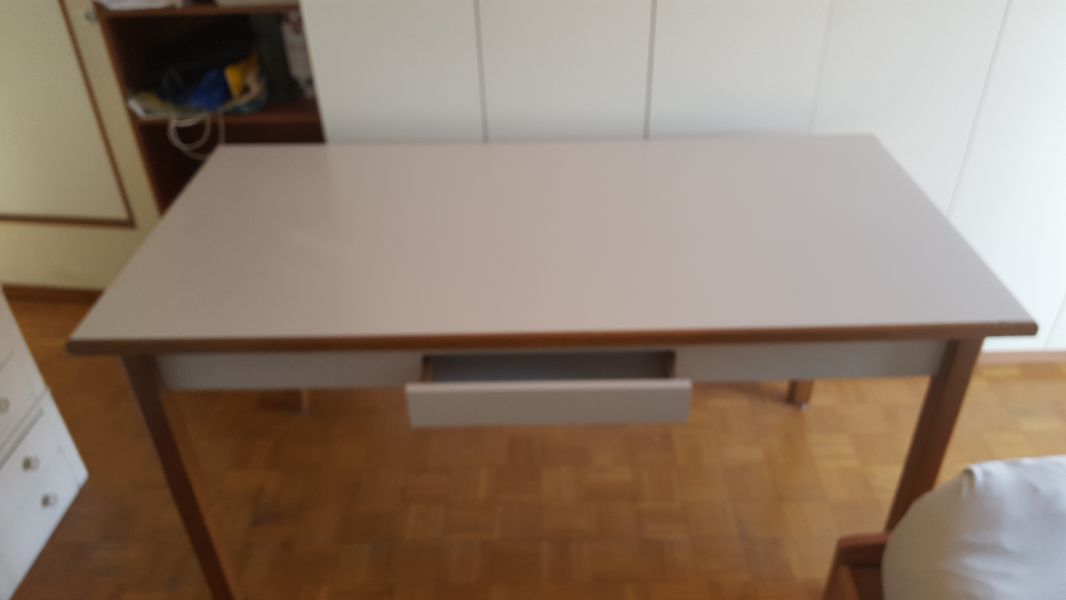 - Vendo tavo color panna con bordi marroni tenuto benissimo con cassetto estraibile misure lunghezza 1,60 larghezza 80 100 euro trattabili