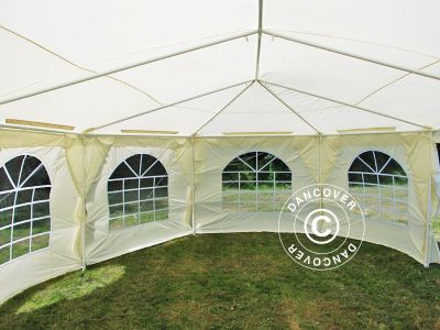 - Fatti di prodotto - Tenda party accogliente, ideale per 40-45 persone circa - Telo del tetto: Poliestere (color champagne) con retro di PVC 260 g/m² - Pezzi lateriali: Poliestere (color champagne) con retro di PVC 240 g/m² - Telo del tetto resistente - Diametro tubo: 38 mm (costruzione portante). Altri tubi: 32 / 28 mm - Staffe di montaggio: Diametro tubo 43, 36, 32 mm - Telaio verniciato a polvere antiruggine - Altezza superiore: 2,65 m, altezza laterale 1,95 m - 8 pezzi laterali (2,5 x 1,95 m) con finestre di stalla: 1,45 m x 1,32 m (LxH) - 2 porta d'entrata (2x 1,5 m) con chiusura lampo nel mezzo - Ancoraggio: tiranti e aste da terra in dotazione. - Sono fornite complete in 2 casse con tutti gli accessori. - Termine di consegna: 3-5 giorni lavorativi http://www.dancovershop.it Tel.: 02 479 21 198