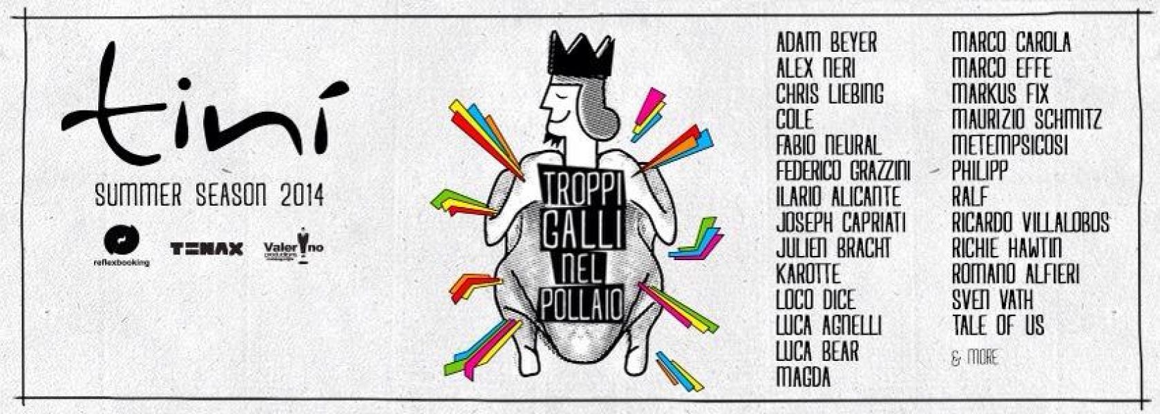 - Troppi galli nel pollaio @ tinė soundgarden (Cecina - Li) Sabato 31 Maggio 2014 Dalle 21:00 Opening Party: MARCO CAROLA (Music On) SILVIE LOTO Sabato 7 giugno 2014 Dalle 22:30 JOSEPH CAPRIATI ROMANO ALFIERI Domenica 15 giugno 2014 Dalle 18:00 alle 03:00 COCOON PARTY: MARKUS FIX DORIAN PAIC JULIEN BRACHT Live LUCA BEAR BRUNI&DANIELLE @ TINė SOUNDGARDEN Via Curtatone est, 19 Cecina (Li) Ingresso in prevendita Per info/prevendite/omaggi/tavoli: Ste 348.8575696 (anche whatsapp) lista_ste@yahoo.it https://www.facebook.com/listaste2