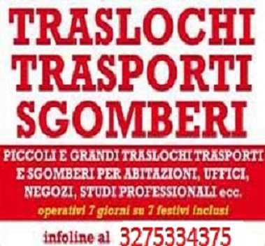 - Privati muniti di proprio furgone effettuiamo a bassi prezzi piccoli traslochi ( in tutto piemonte) smontaggio-montaggio mobili ( elettrodomestici ) ( riparazioni ) , ritiro-trasporto-montaggio nuovi mobili ( tipo IKEA) , trasporti merce e varie cose ( anche al estero) sgombriamo tutti tipi di locali ( alloggi , garage , box , cantine , soffitte ) .Tutto a prezzi bassi ,massima serietà ( puoi fare anche tu una tua offerta , prezzi trattabili ). Info : 3275334375 , 3275334375. Massima disponibilità , lavoriamo 7/7 ( festivi,sabato e domenica ) , preventivi gratuiti senza nessun impegno ( anche via e-mail ). Disponibili subito...chiamateci fiduciosi. Grazie e cordiali saluti a tutti .