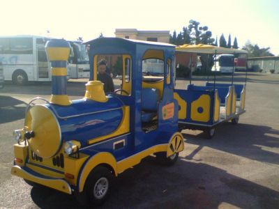 - TRENINO LILLIPUZIANO ELETTRICO MODELLO 48 VOLTS KW 3,5 CAMBIO AUTOMATICO, PENDENZE SUPERABILI 5% COMPLETO DI N. 2 VAGONI CON CAPIENZA 12 CADAUNO, IDEALE PER PARCO GIOCHI, ZONE PEDONALI E PIAZZE, CENTRI COMMERCIALI E ANI9MAZIONE.