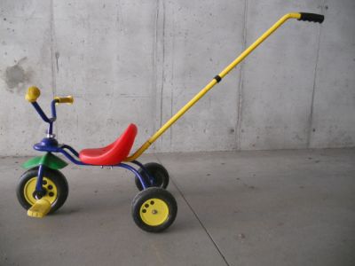 - VENDO TRICICLO CON ASTA PER SPINGERE IL BAMBINO QUANDO NON PEDALA O SE è ANCORA TROPPO PICCOLO, IN OTTIME CONDIZIONI, COLORI 'UNISEX' COME DA FOTO. PREZZO 12 €