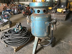 • Sabbiatrice Sinva capacità: lt 185 completa di tubolazioni in sorta e maschera con respiratore e filtri per sabbiatura anno 1992