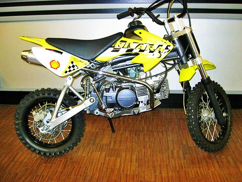 - Chiedere disponibilità colori prima dell'acquisto. Disponibilità colori: giallo, arancione, blu. Motore 4 tempi Monocilindrico Cilindrata 110 c.c. Alimentazione carburatore Capacità serbatoio 3,5lt Carburante benzina verde Accensione a pedale Cambio 3 rapporti Trasmissione catena Dimensioni moto 150x30x75 altezza sella Peso medio 70kg Cerchi ferro verniciato nero Pneumatici 14' anteriore e 12' posteriore Freno anteriore a disco idraulico Freno posteriore a disco idraulico Frizione a bagno d'olio con dischi multipli Sella antiscivolo Monoammortizzatore posteriore. Il veicolo non è omologato alla circolazione stradale, ma solo per spazi privati o circuiti dedicati. Rispettando delle normative CEE e ISO9000. Nuovo da immatricolare. http://pageeasy.com/minimotocross/