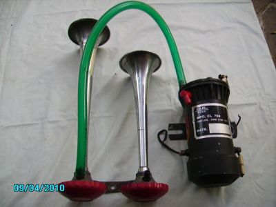 • Vendo-Coppia trombe in metallo + compressore funzionanti alimentazione 12 volt- €.50 3396604713