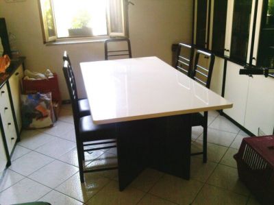 - Tavolo stanza da pranzo con n.6 sedie laccato lucido bianco e nero cm 180 (€100) con mobile lungo cm 260 (€70) laccato lucido bianco e nero in buonissime condizioni vendo separatamente o insieme (se insieme entrambi €140). Fiorella 3342498538