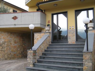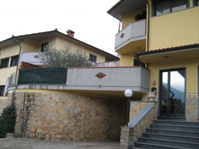 - Vendo villetta bifamiliare in posizione semicollinare con strada in comune due posti auto con loggiatto ingresso indipendente, riscaldamento autonomo mq 217 formata su tre livelli, al terra grande cantina con sottoscala, scanna fosso, un altra stanza e bagno, al piano primo soggiorno con camino, cucina abitabile, bagno e nel solito piano all'esterno resede su tre lati, al secondo piano due camere singole un bagno grande con terrazzi, una camera matrimoniale con bagno di servizio e terrazzo panoramico + manzarda