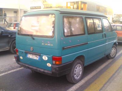 - Volkswagen T4 Westfalia California Camper; anno 1991, unico proprietario, 2400 cc. gasolio km.147.000, full optional, gomme nuove, frizione nuova, freni nuovi, supporti motore nuovi, 4 posti letto;riscaldamento ausiliario webasto da fermo, kit camper completo(cucina, frigo,.N.B.- nel 2011 questo camper diventerà storico e non si dovrà piu' pagare il bollo. euro 9.500 - cell.: 320-2479936[URL]http://andrimail.hellospace.net[/URL]